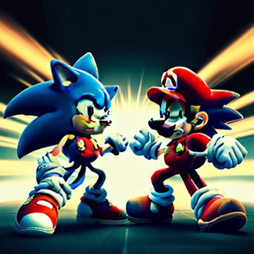2 caracters, ( Mario), (Sonic the Hedgehog), fist fighting, health bars, epic, state of the art graphics, next gen graphics, playstation6, epic resolution, (((sonic's raw power)), ((mario's hero spirit))), epic win, awsomesauce, epic battle , mature, dark, gritty