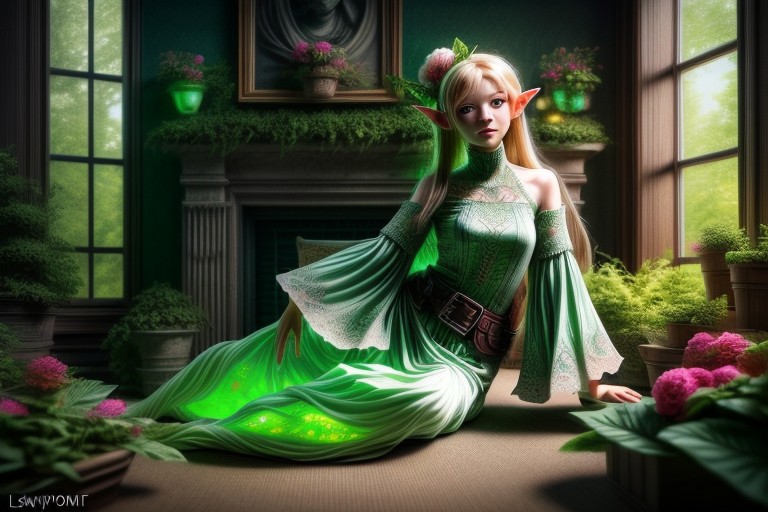`masterpiece, best quality, highly detailed, ultra detailed, DonM3lv3s, (photorealism:1.2),embedding:lazympos hyper detailed masterpiece, dynamic, awesome quality, DonM3lv3sXL, 1girl, (elf),, kawaii, wide sleeves, high neck, delicate patterns, colorful flowres, glow, indoors, plants, nature,