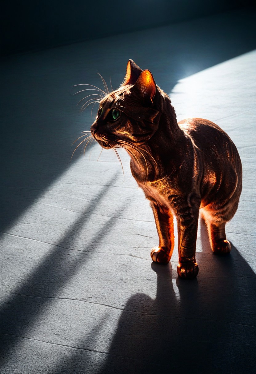 A cat, copper cat, simple background, indoors, wonderful, interesting, made of copper, cat, Smooth Quality,