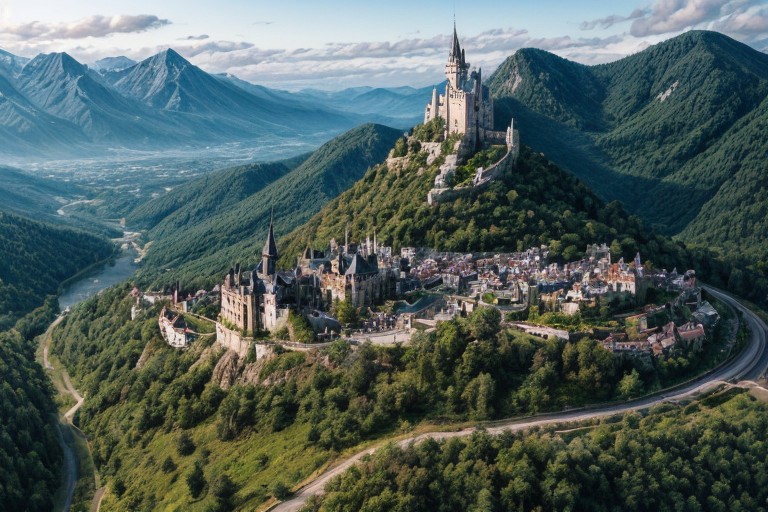 landscape, magic castle- city in mountains