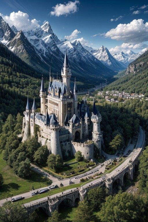 landscape, magic castle- city in mountains