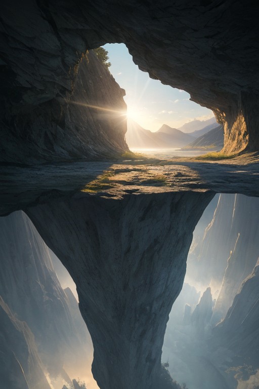 Morning rift, A crack in the sky reveals a glimpse of another world, its light spilling into ours, promising both wonder and danger. beautiful [[surrealism]], intriguing, [[[subtle reflections]]], depth of composition, pronounced volume of composition, detailed background, detailed textures, main object of composition in focus, distributed composition