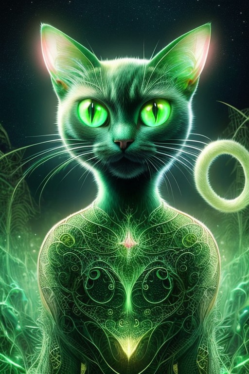 masterpiece, awesome quality, hyper detailed, DonM3lv3s, fever dream, cat, glorp, green alien cat,