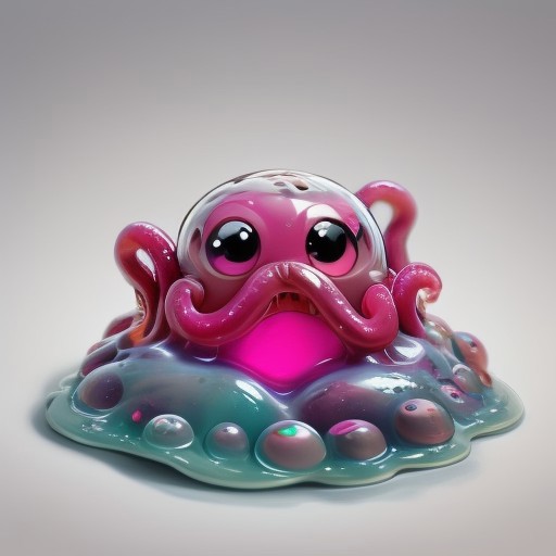A cute octopus, small tentacles, ">w<" face, slime-morph,sl1m3d, made of slime. Transparent, button eyes.
