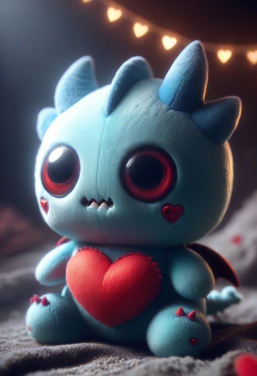 masterpiece,ultra-high resolution,incredible composition,extremely detailed, tiny monster plush with googly eyes, sharp teeth, rage extraterrestrial inside it, in space. made of beaten enchantment made ral-smlvltnpls