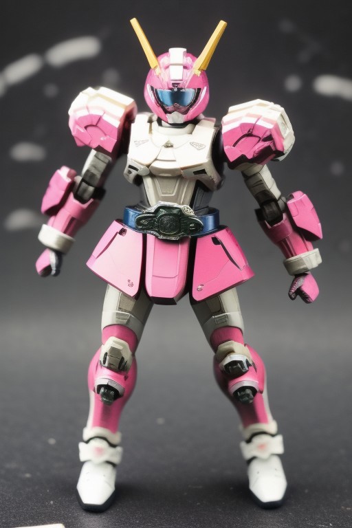 city ruin, explosion, mess, chaos, (heavy bag, gatling gun)(PoppyRider, pink footwear, pink gloves,boots blue eyes, bodysuit,heart helmet, belt,armor, mask, rider belt,boots) tank , negative_hand, Fixhand, mecha, absract art, tankhead, gundam, standing, pose, humanoid, tankhead, 4 legs, flying,