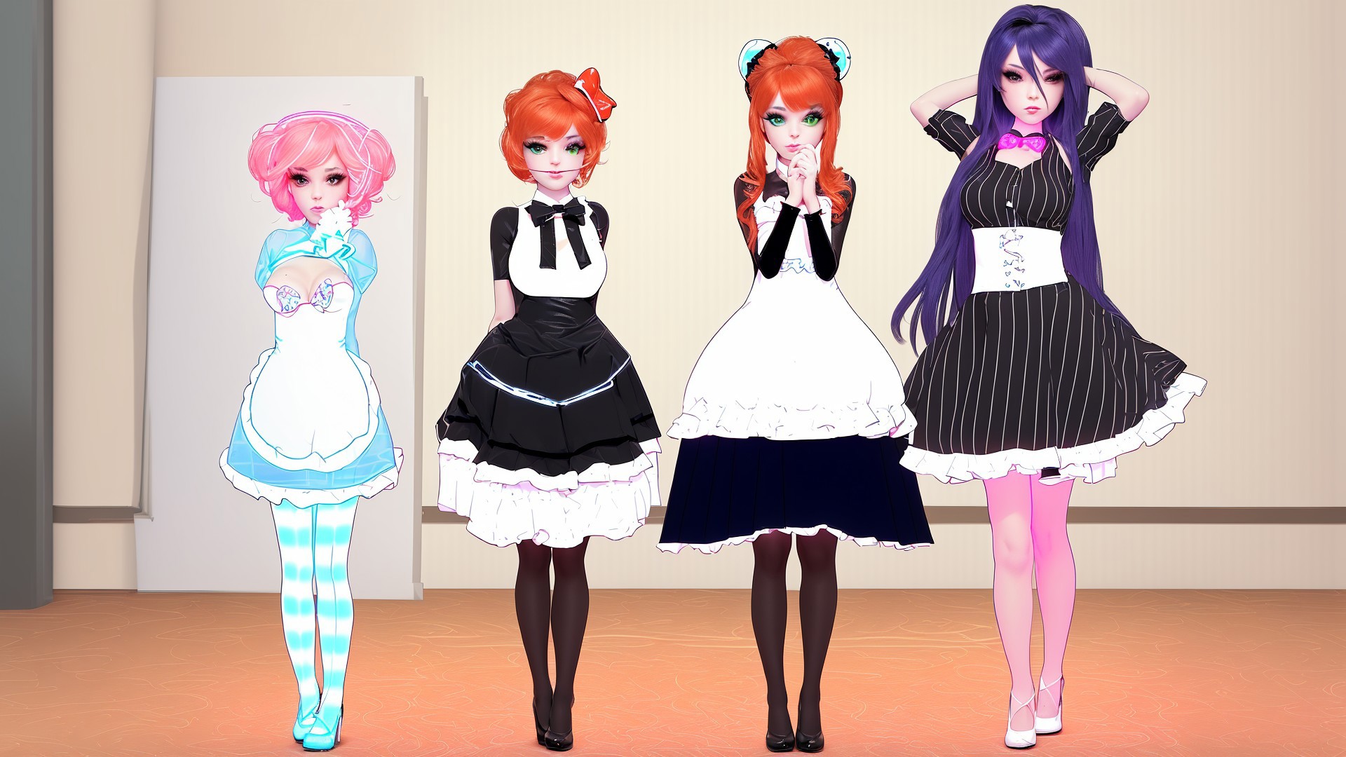 tiny neon glass filaments, casino, girls in bunny suits.