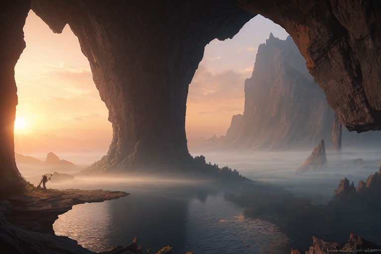 Morning rift, A crack in the sky reveals a glimpse of another world, its light spilling into ours, promising both wonder and danger. beautiful [[surrealism]], intriguing, [[[subtle reflections]]], depth of composition, pronounced volume of composition, detailed background, detailed textures, main object of composition in focus, distributed composition, sunrise, morning haze,