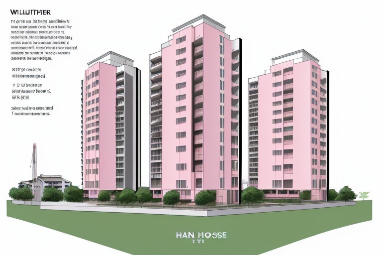 diagram of HDB flats being retrofitted with added"human-scale New Urban(shotgun)house elements" (illustrated in pink) attached to white tower block