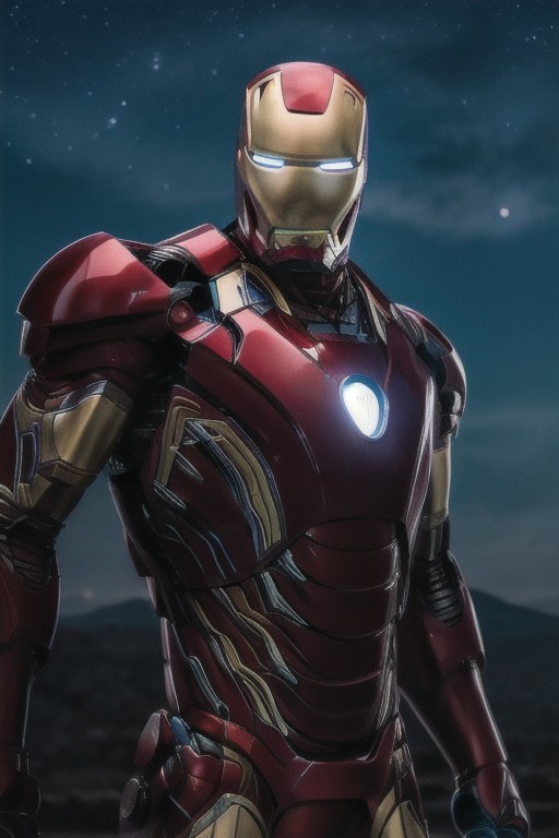 best quality, amazing quality, very aesthetic, absurdres, 1boy, Ironman, solo, outdoors, night sky, night, looking at viewer,