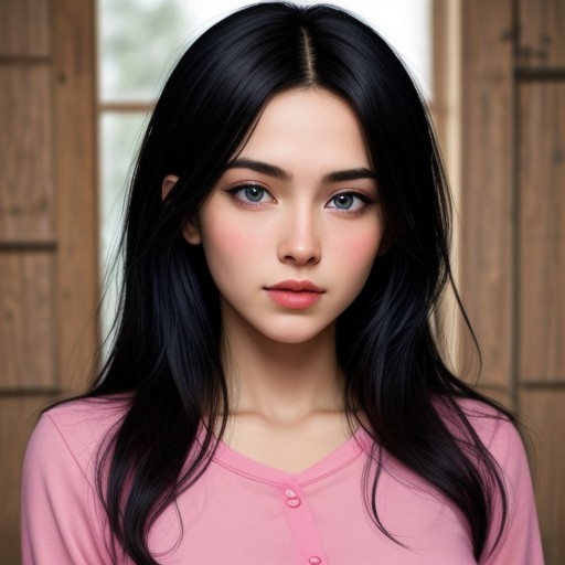 (pink shirt), (blue eyes), cabin, beautiful eyes, (blue eyes), (beautiful girl), high detail skin, high detail eyes, high detail hair, (greek girl), ultra detailed, (high detail face), (highly detail face), masterpiece, (blue eyes), best quality, photorealistic, 1girl, long hair, (tanned skin), big breasts, big boobs, big tits, standing, straight hair, (black hair), (pink shirt), (greek girl), (black hair), (blue eyes)