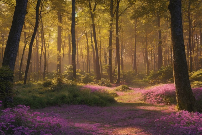 masterpiece_portrait,best quality,photorealistic,ultra high res,detailed lighting,realistic,intricate_details, finely_detailed,8K Ultra High Definition,wide shot,Twilight Majesty: A forest at dusk with a vibrant sky painted in hues of orange, pink, and purple. The silhouettes of the trees stand in stark contrast against the colorful backdrop, creating a majestic scene.,Sun-Kissed Serenity: A forest clearing bathed in warm sunlight, with golden rays piercing through the trees. The soft glow adds a touch of warmth and serenity to the scene.,