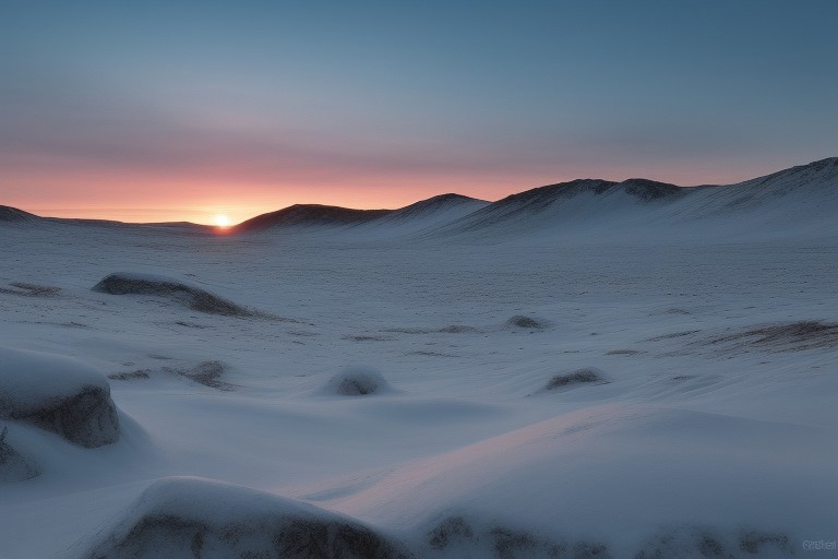 abstract Winter Tundra twilight sunset blue, cool-toned colors, sunset color tones