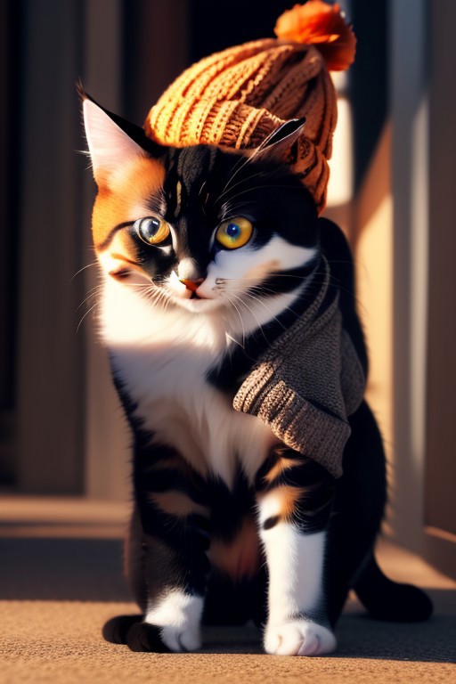 Cute (massive huge eyed), kittens, (wearing beanie hat), spring, 4k, high detail, high quality, realistic, full body,