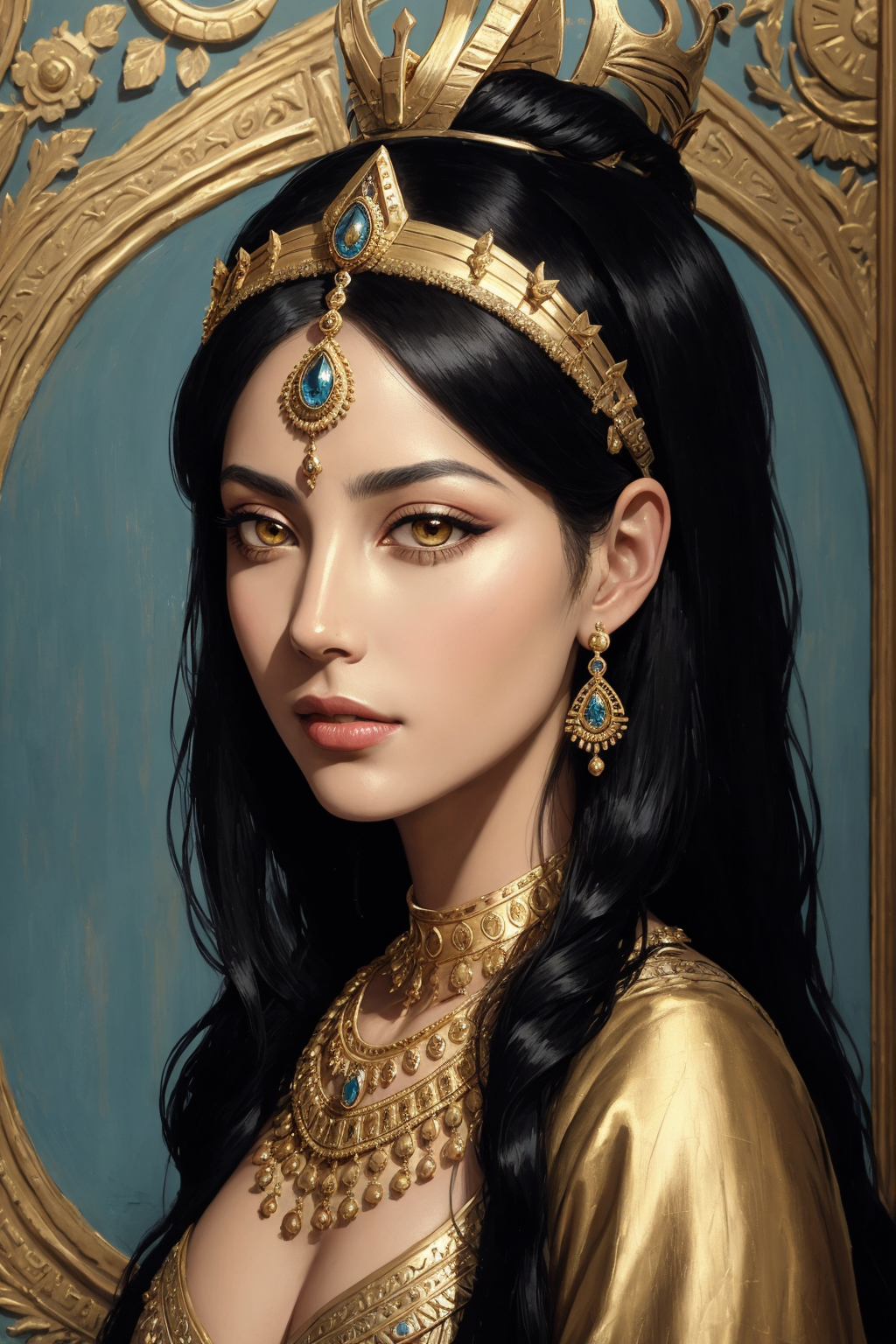 "Cleopatra, beautiful Egyptian queen, elegant royal pose, detailed portrait, painted with oil on canvas, classic renaissance painting style, intricate details, rich textures, visible brush strokes, dramatic lighting, golden jewelry, diamond crown, luxurious Egyptian fashion, ancient palace background, artstation, masterpiece, trending on Artstation, highly detailed, gallery exhibit, 8k scan, aged canvas texture",acrylic on canvas