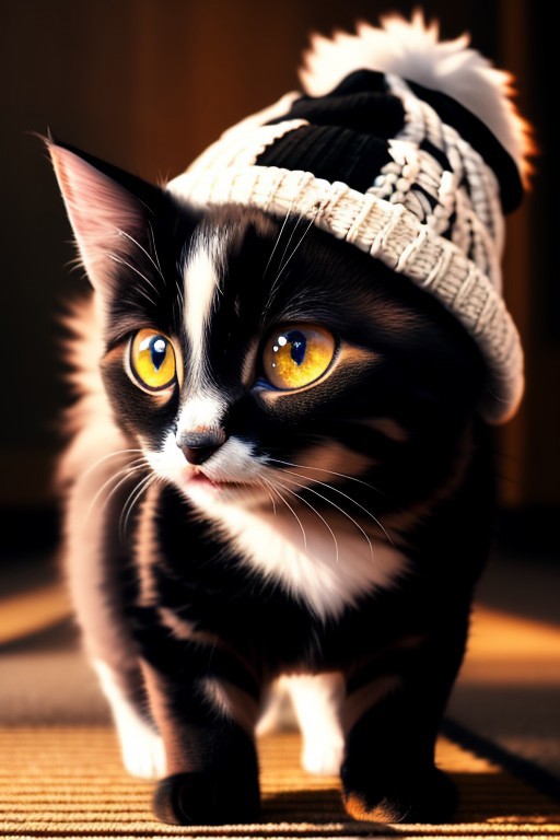 Cute (massive huge eyed), kittens, (wearing beanie hat), spring, 4k, high detail, high quality, realistic, full body,