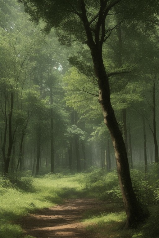 outdoors, summer forest, lush trees, wind