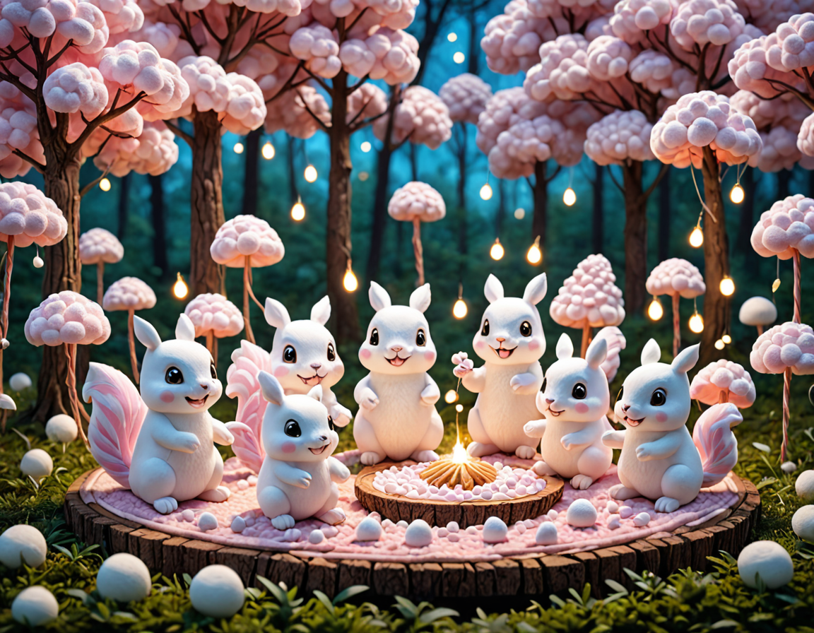 DJ squirrels at a rave BREAK anime artwork professional 3d model I've created a whimsical digital art scene for you. Imagine a world crafted entirely from fluffy, soft marshmallowss <lora:The_world__marshmallows:1><lora:add-detail-xl:1>