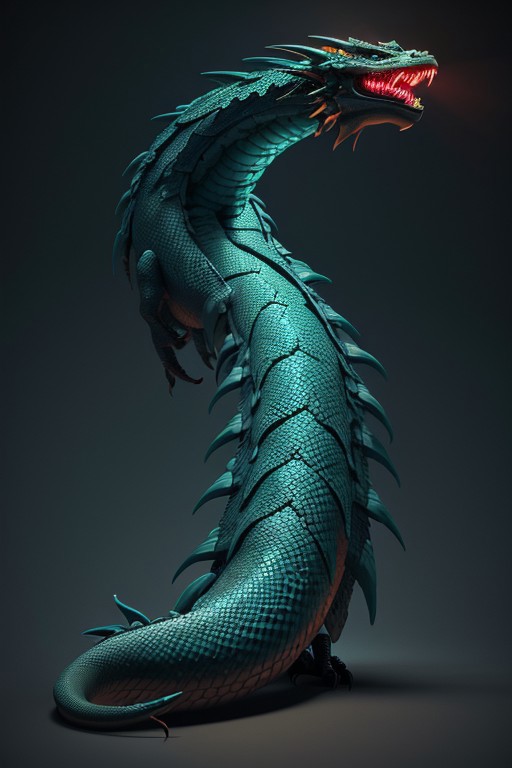 Asian dragon , blue, green snake gradient vibrant neon colour, rough, textural, broad brush strokes, red color prominent detailed, alienzkin, silhouette, spotlight, dark theme, c4d, blender, raytracing, unreal engine 5, render 3d