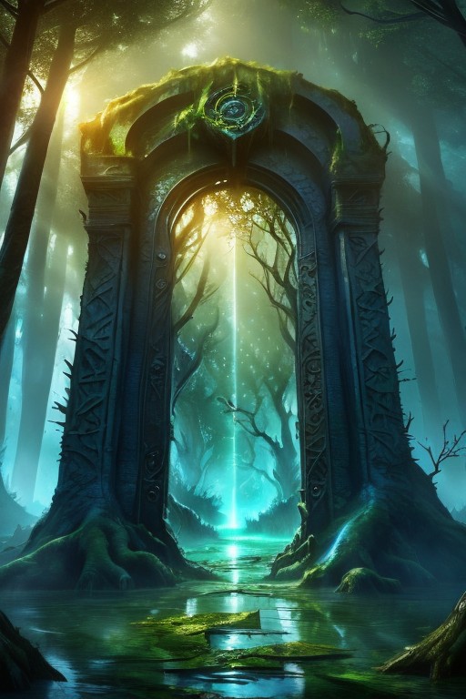 RAW photo, (masterpiece:1.3), subsurface scattering, heavy shadow, (high quality:1.4), (intricate, high detail:1.2), professional photography, HDR, High Dynamic Range, realistic, ultra realistic, photorealistic, high resolution, film photography, ambient lighting, atmospheric effects, <lora:detail_slider_v4:2>, OverallDetail, bare tree, butterfly, door, fantasy, fire, forest, light rays, nature, no humans, outdoors, portal, scenery, sky, tree, water, <lora:Portal:0.8>, in a sinister and dark fantasy swamp, moss, water, FanSwa, <lora:FantasySwamps-11:0.7>, epiCPhoto