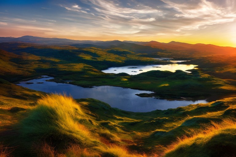 RAW photo, (masterpiece:1.3), subsurface scattering, heavy shadow, (high quality:1.4), (intricate, high detail:1.2), professional photography, HDR, High Dynamic Range, realistic, ultra realistic, photorealistic, high resolution, film photography, ambient lighting, atmospheric effects, <lora:detail_slider_v4:2>, OverallDetail, <lora:Highlands:1>, highlands, mountainous horizon, lake, scenery, landscape, sunset , tower