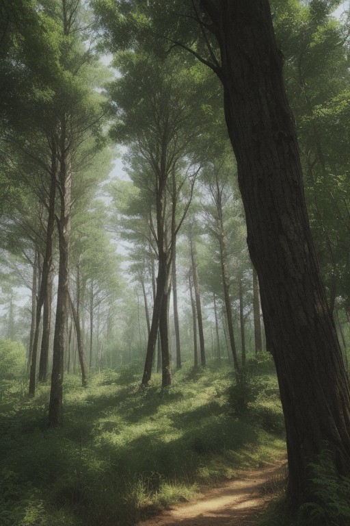 outdoors, summer forest, lush trees, wind