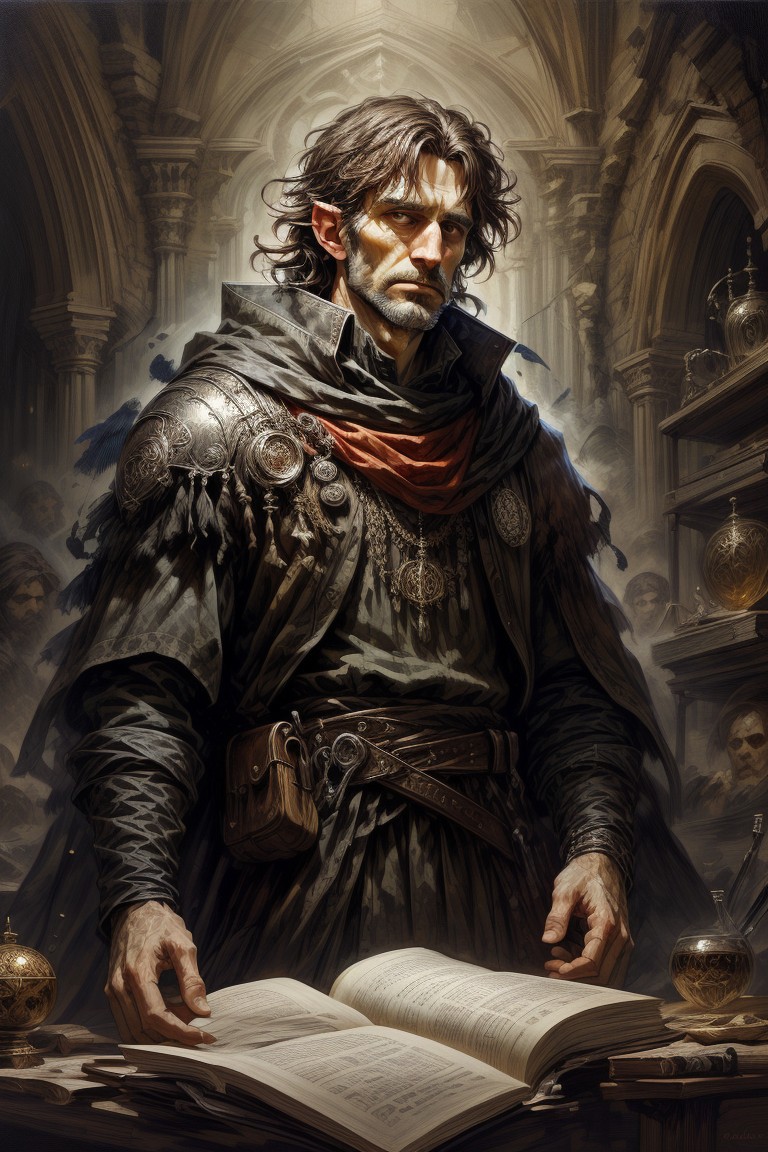 score_9, score_8_up, 8, score_7_up, solo, fantasy style, masterpiece, 8k, dynamic pose, 20 y.o, <lora:Fantasy_Classes_SD:1>, BReak Male BREAK oil painting, BadDream, negative_hand, NEG_EMBED_STABLE_YOGI_V3, FastNegativeV2, AissistV2 (detailed:1.3), (sharp focus:1.1), medieval style, (expressive face:1.2),,