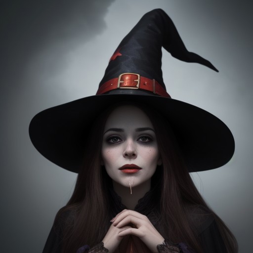 A beautiful witch who is on her knees and looking upward with a blank expression on her face and she is slightly drooling out the side of her mouth. her eyes look cloudy