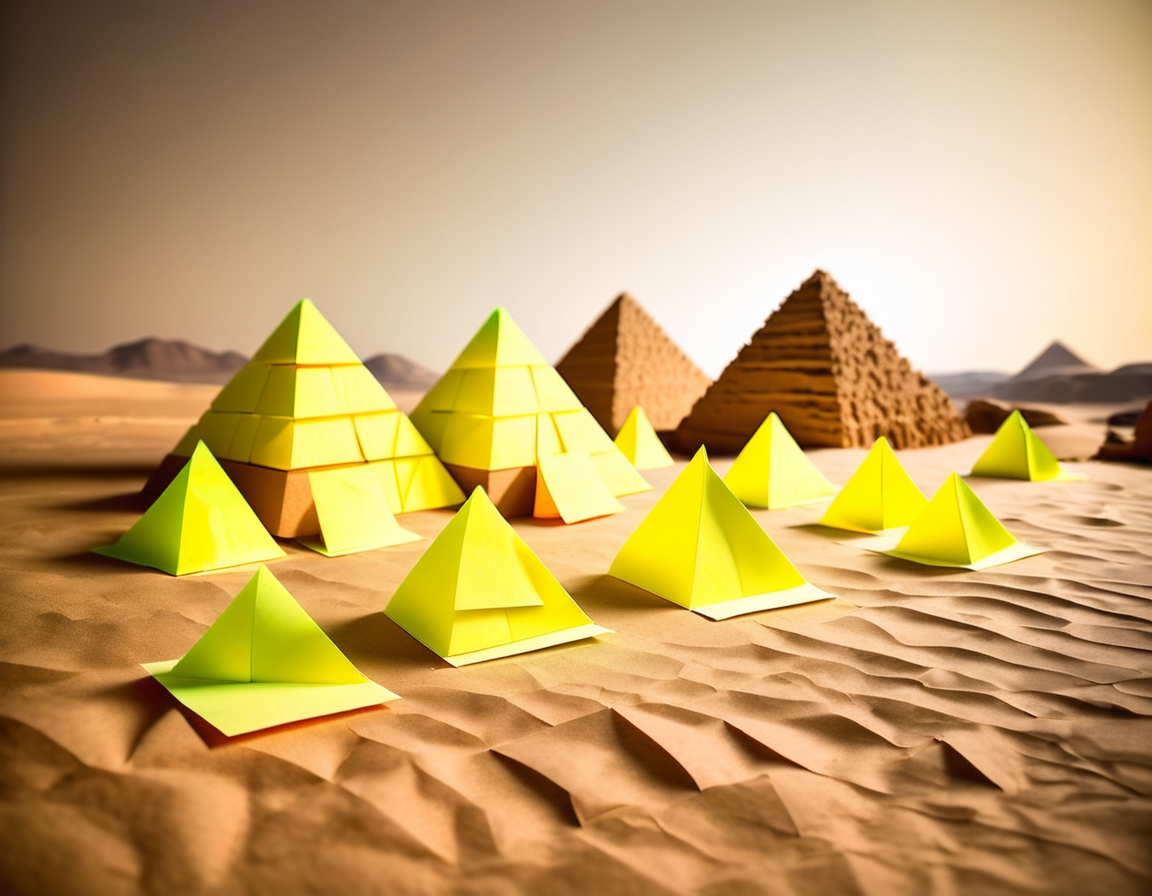 pyramids made out of Jed-StickyN, desert sand, dry arid climate, harsh lighting <lora:StickyNotesStyle:1>