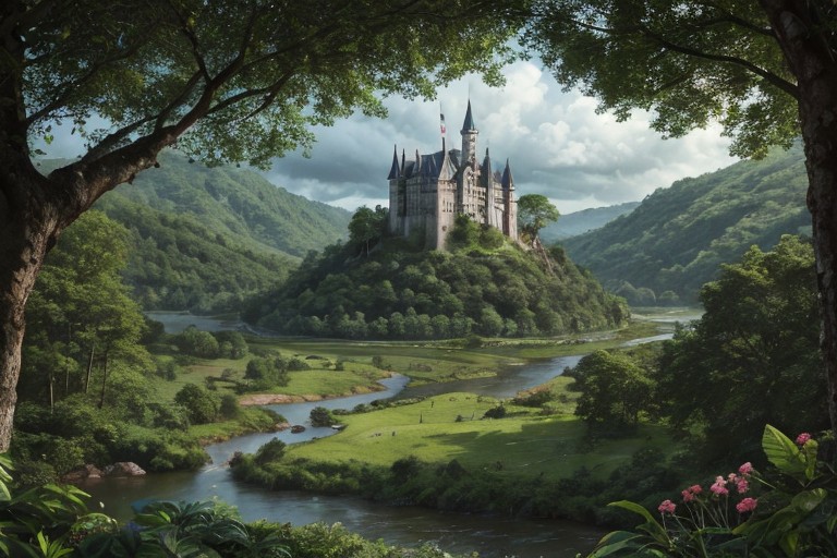 panorama, Feudal landscape, (castle:1.2), grazing meadows, peasants, (Middle Ages:1.1), (perfect symmetry:0.9), highly detailed, Beautiful lighting, photoreal, 4k, depth of field, (treehouse:0.9), (atmospheric perspective:0.8), tropical moist broadleaf forest, floral arch, branch, River, Rain storm <lora:DETAIL_SLIDER_BY_STABLE_YOGI:1.2>