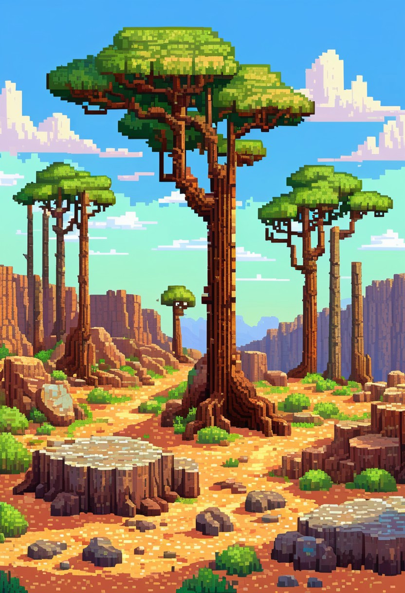 neo-Impressionism, pixel art petrified forest with trees made of rock, highly detailed, refined, defined, follow negative prompts