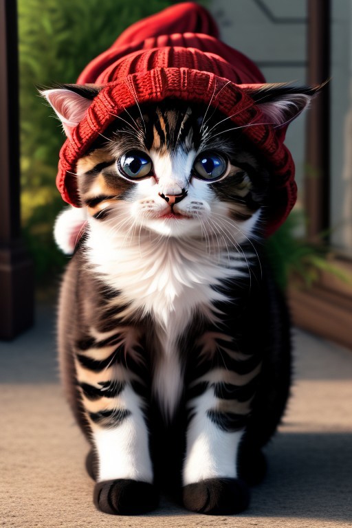 Cute (massive huge eyed), kittens, (wearing beanie hat), spring, 4k, high detail, high quality, realistic, full body,