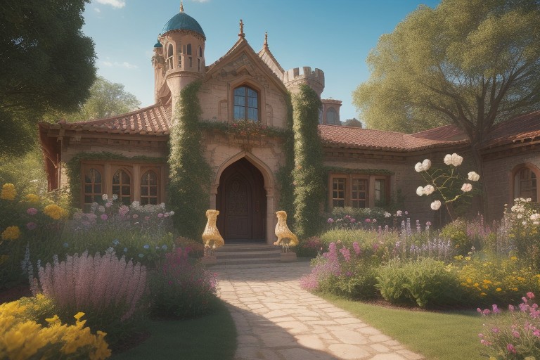 A happy cute, (castle:1.2), building, architecture, Adorable, heart warming, cheerful, detailed, bright colours, shiny, eco-friendly, garden, spring, environmental, sunlight, shadows, digital art, whimsical, playful, intricate details, high resolution, photorealistic, joyful atmosphere, gentle, soft lighting, cartoonish style, enchanting, vivid, appealing, imaginative, family-friendly, [photography, realistic, photorealistic, (8k), (highly detailed), cinematic lighting, intricate details, (high resolution), award-winning, correct focus, realistic, realistic lighting, (highly detailed), masterpiece], ((Cinematic Still-Shot)), no humans,