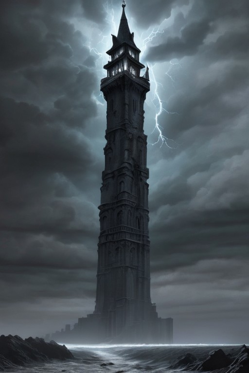 RAW photo, (masterpiece:1.3), subsurface scattering, heavy shadow, (high quality:1.4), (intricate, high detail:1.2), professional photography, HDR, High Dynamic Range, realistic, ultra realistic, photorealistic, high resolution, film photography, ambient lighting, atmospheric effects, <lora:detail_slider_v4:2>, OverallDetail, witow, a sinister, slender tower on the coast in a storm, <lora:Wizard_Tower-10:1>, epiCPhoto