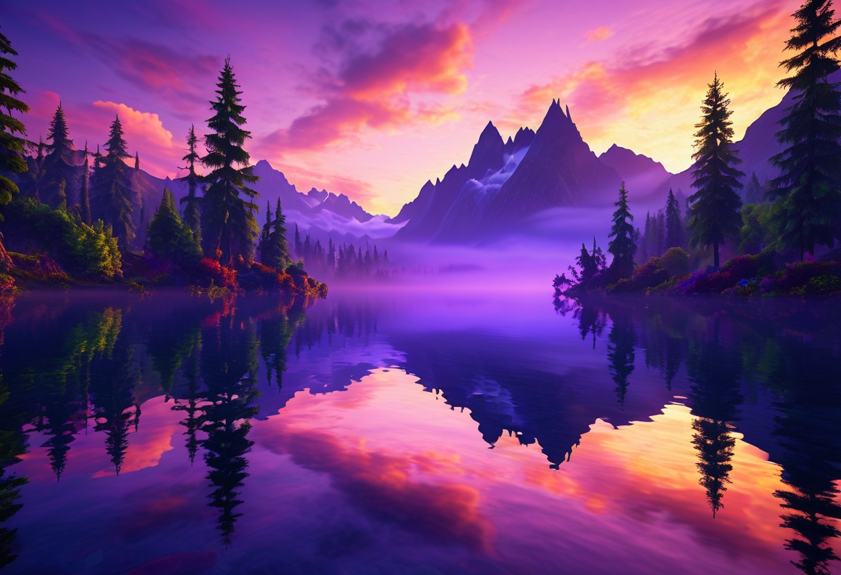 (masterpiece:1.5), unreal 8k wallpaper, unity 8k wallpaper, score 9, score 8 up, score 7 up, masterpiece_portrait, extreme quality, reflection, surface reflection, dynamic lighting, Cinematic style, cinematic quality, ((no humans, no people)), photorealistic, realistic, a spectrum of iridescent colors, precise, fractal design, flowing curves, precision, colorful, fractal geometry, harmonic interference, digital illustration, photo manipulation, altered realities, fantastical scenes, digital artistry, striking visuals, sharp focus, detailed background, light reflection, futuristic and fantasy of boundless opportunities and architecture, a beautiful and mysterious landscape, The scene is set at twilight with the sky painted in deep purples, blues, and hints of gold from the setting sun, In the foreground a tranquil lake reflects the twilight colors, mystical glowing trees , Mist rises gently from the water's surface adding an ethereal quality, In the distance a towering mist-shrouded mountains loom their peaks obscured by low-hanging clouds, The landscape is dotted with glowing plants that emit a soft enchanting glow casting a surreal light on the surroundings, A narrow winding path leads into a dense shadowy forest inviting the viewer to imagine what lies within, The overall atmosphere evokes a sense of magic, mystery, and untouched natural beauty, (extreme high fantasy), (close up) (absolutely magnificent and mysterious alien world), (luminescent water), reij-snrs